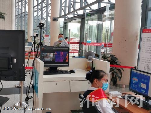 图二:办事人员经过体温检测设备接受检测后才可进入。(记者 苏国义)