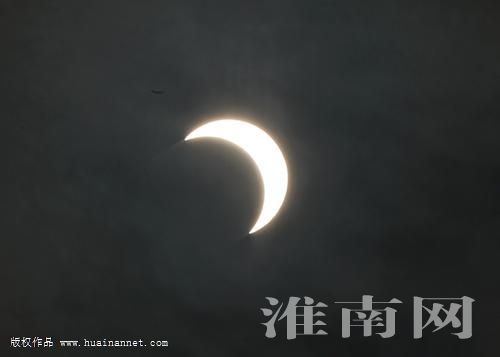 图为淮河早报、淮南网记者于21日下午4时07分在洞山中路街头拍摄的日偏食景象。