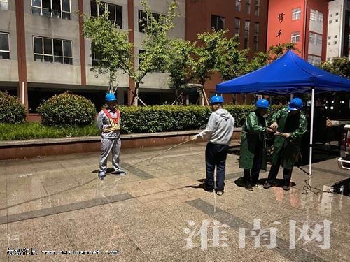 图二:电力工人趁着学生不在校园的夜间进行施工。(力达凤台分公司供图)(记者 苏国义)