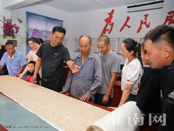 图一:在凤台县岳张集镇六院村怀彪农机服务专业合作社,徐怀彪在向社员展示宣纸育秧的技术。