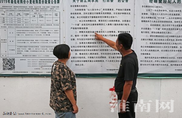 图二:凤台县顾桥钱庙粮站内,徐怀彪和妻子在了解国家卖粮的相关知识。