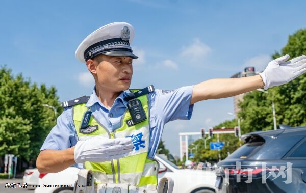8月5日,地表温度接近40℃,市公安局交警支队田家庵一大队民警冒着酷暑在路面维护交通秩序。(记者 焦孝诚 通讯员 郭晨)