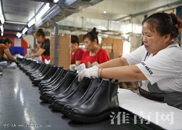 在八公山工业集聚区淮南鑫溯鞋业有限公司,工人加紧生产出口欧洲国家的各类鞋子,日产量达1万余双。今年以来,该公司积极应对新冠肺炎疫情影响,抓好员工培训,加大技术升级,复工复产后组织员工保质保量按时完成各类出口订单,解决当地500余名群众实现家门口就业。(通讯员