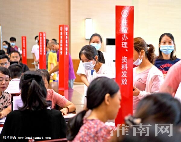 8月16日,淮南二中高一新生有序报到,迎接高中生活到来。秋季开学之际,淮南市高一新生陆续报到,各学校认真落实新冠肺炎疫情防控措施,有序组织好高一新生入学报到、注册、缴费、领取录取通知书、贫困生资助等工作。(通讯员 怀轩)