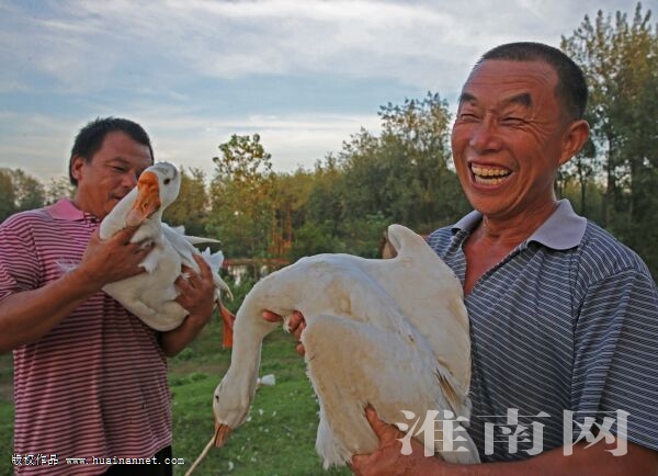 图二:韩维全和韩维周兄弟年养殖皖西白鹅1000余只,实现脱贫。