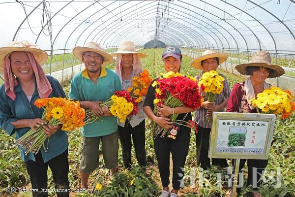 图六:花卉基地带动贫困群众16人,村级集体经济收入实现6.6万元。