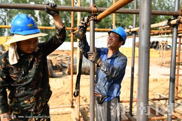 谢家集区克服洪涝灾害带来的不利影响,扎实做好“六稳”工作,全面落实“六保”任务,全力以赴加快推进重点项目建设。图为淮南西商农商城项目建设施工现场,工人们正在战高温、斗酷暑、赶进度,确保如期完成工程建设任务。(通讯员 秦 龙 王永富)