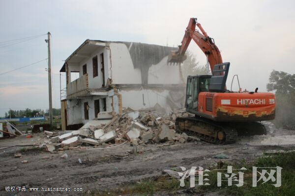 凤台县岳张集镇重拳出击,集中清理整治露天煤堆场。目前,全镇范围内37家露天煤堆场全部整治到位。图为该镇近日组织大型机械拆除煤堆场的工棚和楼房。(记者 李东华 通讯员 宋道勇)