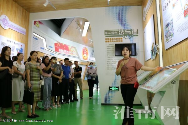 8月27日上午,田家庵区2020年“江淮普法行”之“普及行”暨青少年法治文化教育活动在淮南市法治文化馆举行,150多名普法志愿者参与此次活动。活动还选聘法治副校长48名,帮助辖区学校开展各类普法活动。图为该区普法志愿者在馆内听取讲解。(记者 李东华 通讯员 吴喆敏)