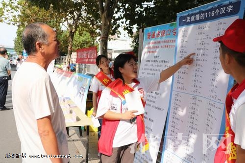 (记者 廖凌云)“刘庄有个刘小柳,柳庄有个柳小妞。刘小柳放奶牛,柳小妞路边种杨柳”……9月16日上午,由市语委主办、田家庵区语委承办的淮南市第23届推广普通话宣传周活动在田区政府门前举行,过往群众各个信心十足,踊跃比拼普通话,挑战绕口令!