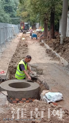 随后,淮河早报、淮南网记者在中兴东村看到,负责该小区雨水污水管网改造的施工人员,也正冒着小雨在施工现场忙碌着。