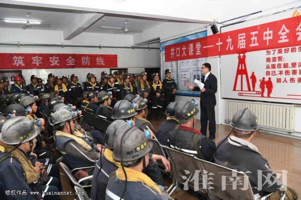 11月12日,中煤新集公司一矿井口,矿党委负责人正在井口大课堂上宣讲党的十九届五中全会精神。连日来,中煤新集开展了“三级书记上大课”活动,组织公司书记、矿书记、基层支部书记在井口大课堂将党的十九届五中全会精神传达到基层。 (记者 倪军 通讯员 余克平)