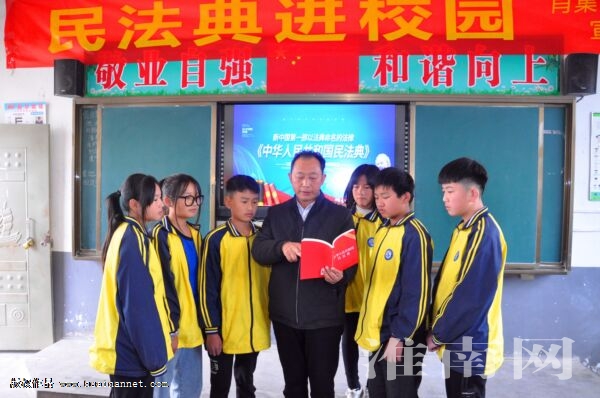 近日,凤台县朱马店镇肖集中学开展“《民法典》知识进校园”活动。老师用通俗易懂的语言、鲜活的事例,为学生们讲解如何运用《民法典》保护自身权益,希望他们从小培养法治观念,养成自觉学法、遇事找法的习惯,培养解决问题靠法的能力。(记者 朱庆磊 通讯员 田文体)