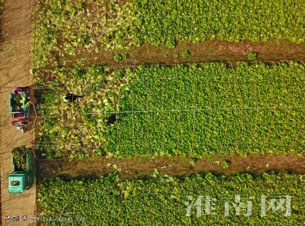 图三:毛集镇东风湖毛凤昌蔬菜种植合作社种植卷心菜、西兰花等蔬菜100亩,实现全流程订单化,蔬菜从田地直接进超市。
