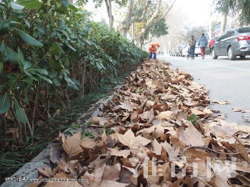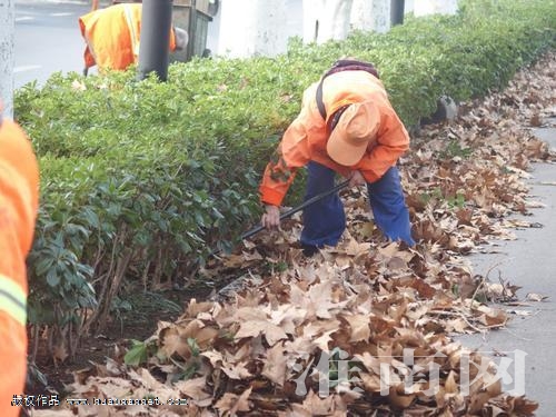 寒冬时节,枯叶渐渐腐烂。12月中旬,在淮南洞山中路两侧,环卫人员不辞劳苦,细心地把路边矮丛绿化带积累的落叶清理出来,然后集中清运,带给城市干净整洁的妆容。(记者 张雪峰)