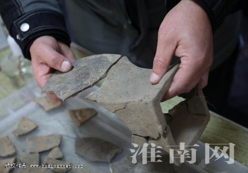 在考古队驻地,淮河早报、淮南网记者见到了一些出土文物。这些器物每件都附有专用标签,上面记录着器物名称、出土时间、方位、墓葬编号等细节内容。考古队员介绍说,在发掘清理结束的墓葬中,出土器物有70余件,这些器物由于年代久远又深埋地下,大部分已经破碎,只有少量是基本完整的。考古队员取出几件较为完整的器物介绍说:“你看这件三足行灯,是一个很圆的铜器,中间可以插蜡烛,一圈的灯罩现在已经看不见了。有手柄,可以夜行使用;底部有三个小(兽)蹄足,放置也不会倾倒,制作非常精美。”