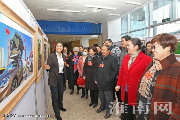 图十六:政协委员在会议间隙观看“小康路上——淮南市美好生活”摄影展