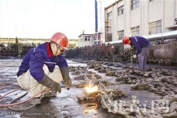 1月15日,中煤新集楚源公司职工在室外场地检修处理刮板机旧链条、刮板。针对当前市场煤炭需求旺盛,企业效益较好的情况,该公司仍坚持经营管控不放松的经营工作思想,严格执行成本考核指标,坚决杜绝材料配件浪费现象的发生。 (通讯员 陈海朗 摄)