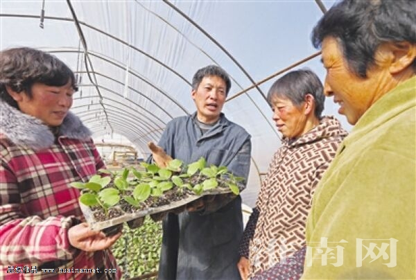 1月18日,淮南市毛凤昌农业种植专业合作社蔬菜大棚内,毛凤昌正在培育精品南瓜秧苗,80后大学生毛凤昌2003年从安徽农业大学毕业后学以致用,一直从事农业生产工作,2015年返乡创业,回到家乡当起了“农场主”在淮南毛集实验区董峰湖流转土地100亩种植瓜果蔬菜,每年向市场供应高品质无公害瓜果蔬菜300吨。并动员5户农民入股加入合作社,安排30名附近村民就近就业。 (记者 倪军)