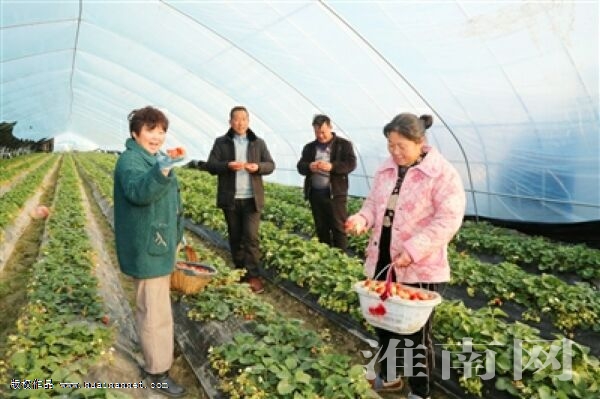 1月19日,大通区孔店乡河沿村果农在采摘草莓,脸上洋溢着丰收的喜悦。近年来,河沿村利用扶贫资金,建设350个钢架大棚,通过租赁的方式,引导50多户群众发展草莓种植,既促进了群众增收,也壮大了村集体经济。目前,该村草莓种植面积已达1200亩,成为远近闻名的富裕村。