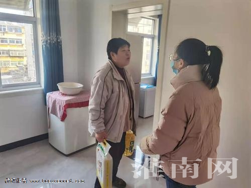 在计划生育特扶家庭郭淑兰家,工作人员送上大米及食用油,与她促膝谈心。郭淑兰家虽然为社区特扶对象,享受国家补贴,但她身患大病,老伴常年卧床不起于2019年去世,儿子智力二级残疾,母子相依为命,生活比较困难。慰问中,工作人员叮嘱老人如果生活上遇到急事、难事可随时向社区工作人员寻求帮助,社区一定会及时给予解决。
