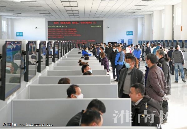2月20日,在淮南市人力资源市场,应聘人员参加“送温暖,稳岗留工”专场招聘会。当日,我市市县(区)两级人力资源和社会保障局同步举行“送温暖,稳岗留工”专场招聘会,来自省内外的183家企业提供机械加工、家政服务等就业岗位5000余个,保障企业生产有序、就业形势稳定。