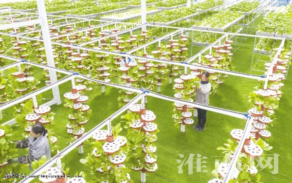 在凤台现代农业科技示范园内,安徽州来绿港智慧农业科技发展有限公司员工忙着管理水培蔬菜。该园区占地面积1045亩,高端设施农业面积44万平方米,总投资约6.8亿元。一期已经建成智能玻璃温室面积28万平方米,包含智慧农业生产、工厂化种苗繁育等六大功能区,年产值超过2亿元,带动周边400余名群众实现本地就业。(记者 倪军)