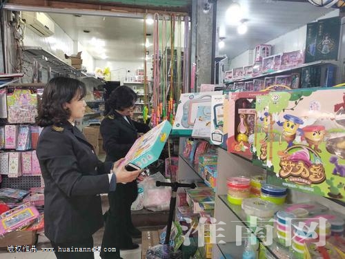 图为淮舜市场监管所执法人员检查儿童玩具。(田家庵区市场监管局提供)