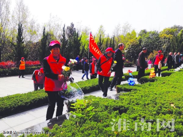 清明节期间,市民政局机关离退休老党员志愿者,来到淮南市烈士陵园,向烈士墓敬献鲜花,祭扫烈士陵墓,缅怀革命英烈。(记者 朱庆磊 实习生 宋 薇)