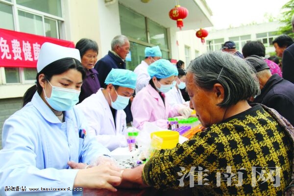 4月15日,凤台县关店乡卫生院医护人员在给65周岁以上老人进行免费健康体检。自4月11日以来,该院对全乡65周岁及以上老年人和高血压、糖尿病等重点人群进行肝功能、肾功能、血常规、尿常规、心电图等20多项检查,全面掌握辖区老年人及重点人群的身体健康状况,做到有病早发现、早治疗、早干预。 (通讯员 常开胜 常闻军)