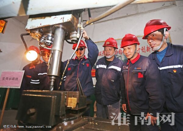 中煤新集一矿示范岗党员现场教授职工摇臂钻床操作使用要领。该矿党员干部按照党史学习教育要求,认真践行“我为群众办实事”活动,通过导师带徒、现场传艺等方式,帮助职工提高业务技能,切实为广大职工办实事、做好事、解难事,以实际行动向建党100周年献礼。(记者 倪 军 通讯员 陶志政)
