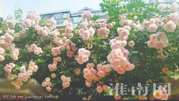 近日,淮河早报、淮南网记者嗅着花香来到这户人家,远远就看到墙头上粉色的蔷薇争先恐后地怒放着,慢慢靠近,空气中甜美的花香渐渐浓郁起来,深吸一口气,清甜入脑。