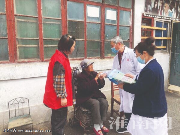 图:为社区老人进行体检和健康宣讲