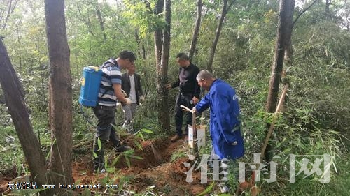 图一:向蚁巢喷药。