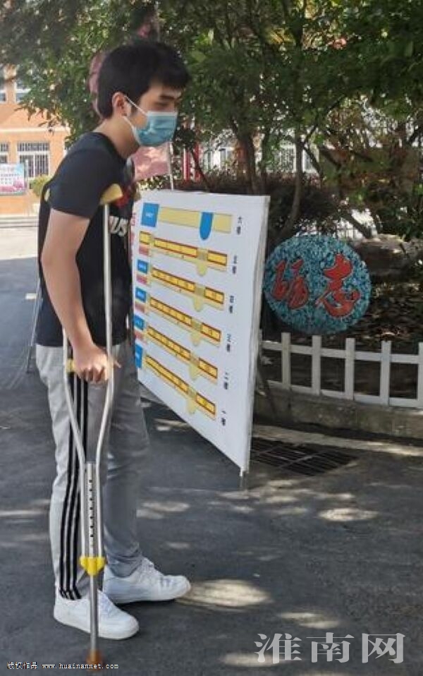 6月7日,考生米军瑞拄着双拐自信地走进淮南二十六中考点。当天,我市多名与他一样身体不便的考生,集中了在了这个考点,带伤赴考。