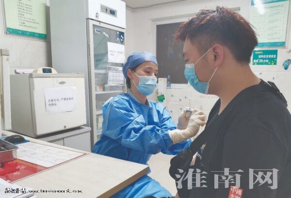 图为 6月26日晚,市民在田家庵区公园街道社区卫生服务中心接种新冠疫苗。(记者 苏国义)