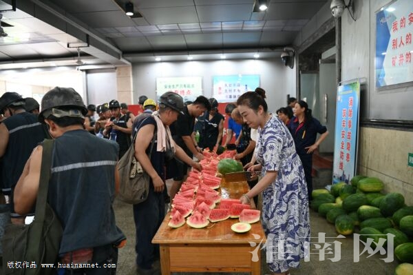 连日来,淮河能源公司顾桥矿持续开展“夏送清凉”活动,把企业的关心关爱传递给每位职工。活动中,工作人员把清凉可口的西瓜切好送到职工手中并为他们讲解防治中暑的知识。 (通讯员 夏登洁)