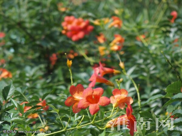 (记者 张雪峰) 当前尚处三伏天的“末伏”,仍感闷热,但对于植物来说,夏季光热却是生长的能量源泉,由于光合作用充分,植物生长旺盛。这不,淮南各地广场游园藤架上喜光的凌霄花正处在盛花期,花枝伸展,色彩鲜艳,十分美观。但见一簇簇桔红色的喇叭花,缀于枝头,迎风飘舞,格外逗人喜爱。
