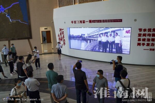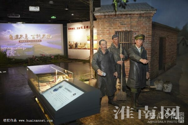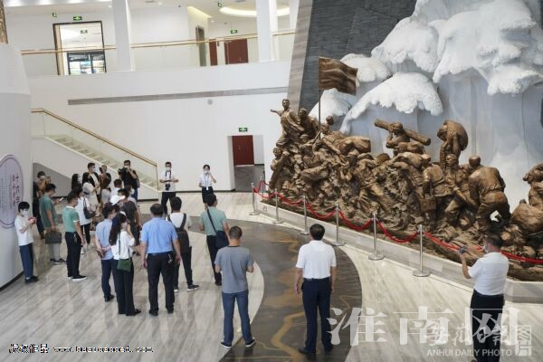 8月11日下午,拍摄阜南县王家坝抗洪纪念。6月29日,王家坝抗洪纪念馆揭牌,正式开馆迎客。该馆主体建筑面积4740㎡,其中布展面积4160㎡,展厅共分干里淮河·沧桑蒙洼、顾全大局·舍家为国等七个部分,展出珍贵的照片、文献、实物、影像、雕塑等资料2000余件,全面展示了淮河治理、抗洪抢险、生产自救、领导关怀等伟大的光辉历程,生动诠释了王家坝精神的时代价值和科学内涵。(记者 李博 摄)