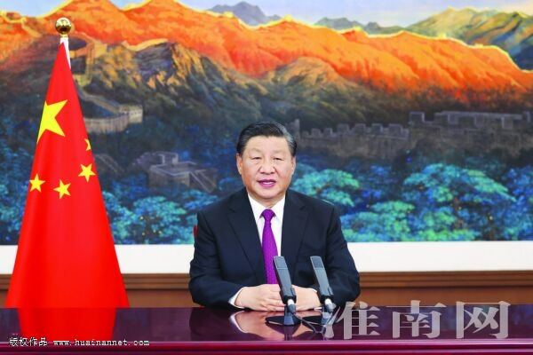 图:9月2日晚,国家主席习近平在2021年中国国际服务贸易交易会全球服务贸易峰会上发表视频致辞。 新华社 发