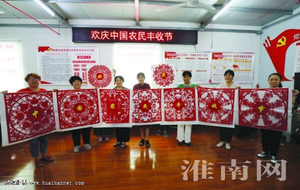 9月23日,农历秋分,迎来第四个中国农民丰收节。田家庵区朝阳街道龙湖社区组织剪纸爱好者,创作出四季瓜果、耕牛麦穗等图案的作品,以表达对连年丰收的喜悦心情。(记者 张 越 摄)