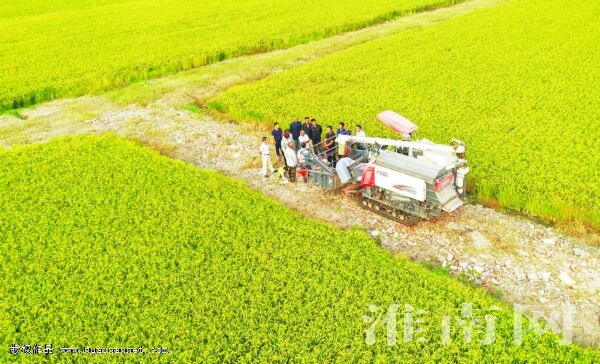 稻浪翻滚,满目金黄,又是一年丰收时。国庆期间,凤台县69万亩水稻陆续开镰收割,县农机学校把新型职业农民学校搬到地头,现场解决农民在收割中出现的机械问题,确保颗粒归仓。(记者 倪 军 通讯员 宋道勇 摄)