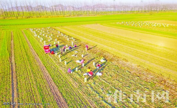 11月24日, 毛集实验区种植户在董峰湖行蓄洪区采摘萝卜,装车外运,一派忙碌景象。据了解,今年董峰湖行蓄洪区种植萝卜3000多亩,亩产可达3000公斤。当前正值萝卜收获季,河北、浙江、新疆等地客商闻讯前来收购,群众在田间地头就能把自家的萝卜卖个好价钱。(记者 倪军 陈海涛)