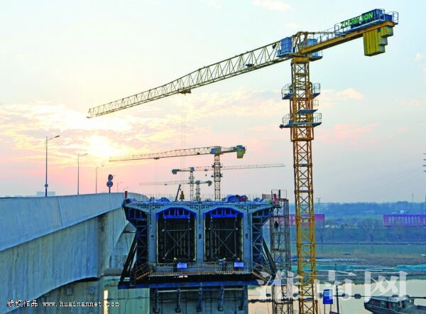 1月1日,中铁四局建设者在引江济淮安徽段东津渡大桥左幅桥梁工地施工。大桥位于谢家集区与寿县交接处,是引江济淮工程的重要控制性节点工程,线路全长1900米,大桥主跨130米、宽度33米,预计今年12月底通车。(记者 陈彬)
