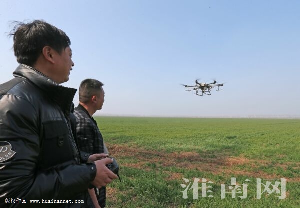 2月27日,寿西湖农场5.6万亩小麦田里,一台台大型自走式喷药机飞奔,一架架无人植保机穿梭,田间地头一片繁忙景象。当前,小麦逐步进入返青拔节期,寿西湖农场掀起春季田间管理高潮,职工利用各种机械喷洒农药、微肥、除草剂等,为粮食再次增产丰收打下基础。(记者 倪军 陈海涛 通讯员 余 飞 摄)