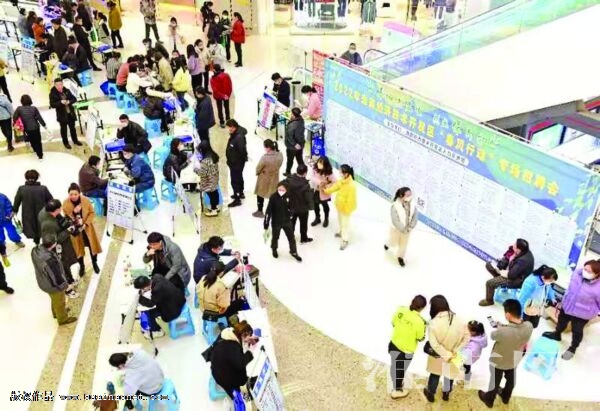 2月26日,淮南万达广场商场内,淮南经济技术开发区举行2022“春风行动”专场招聘会,45家企业提供制造、医药、电子等工作岗位600个。(记者 摄)