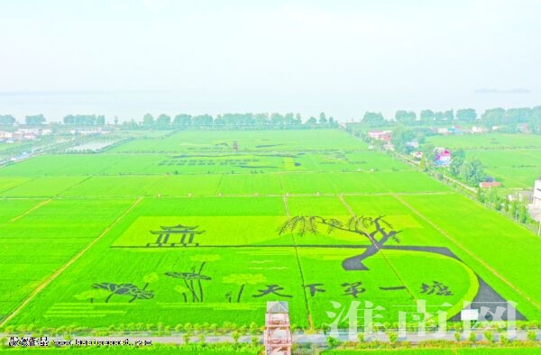 2016年以来,安丰塘镇依托世界灌溉工程遗产、中国重要农业文化遗产安丰塘(古称芍陂),大力发展乡村旅游。他们用稻田作画布、秧苗为颜料,通过种植不同品种的水稻创意作画,以观光休闲农业带动乡村旅游,增加农民收入,助力乡村振兴。(记者 摄)