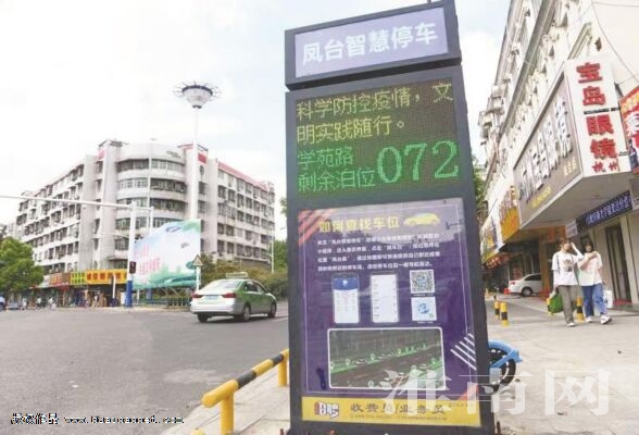 图为凤台县城内,主干道路面车位信息诱导屏实时显示停车位状态,方便市民停车。(记者 摄)