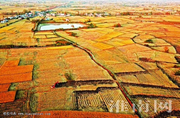 寿县以高标准农田项目“小田变大田”助力秋收秋种为目标,全力推进7.2万亩高标准农田项目“田块整治”,在项目区掀起“抢秋收、抢施工、助秋种”的热潮。图为双庙集镇吴岗村高标准农田建设现场。(记者 倪 军 通讯员 赵广军 摄)