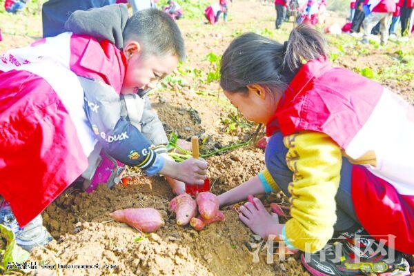 自2019年以来,每到蜜薯丰收季,淮南市红十字会都会组织100多名志愿者上山帮助王士兵收获蜜薯,体验劳动,并通过爱心义买义卖形式,解决销售问题。(记者 陈 彬 摄)